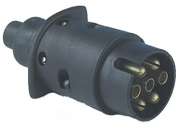 Musta 7-napainen perävaunuliitin. Mukana tiivistekupu.