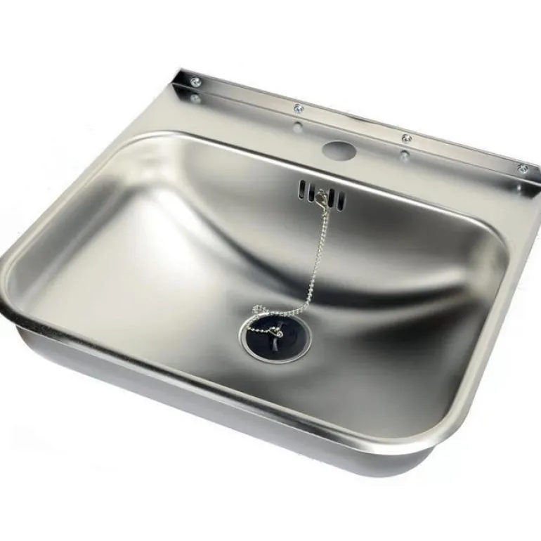 Pesuallas, joka sopii asennettavaksi työtilaan, autotalliin, pesuhuoneeseen tai vastaavaan. Pesuallas on valmistettu ruostumattomasta teräksestä ja varustettu hanan reiällä Ø 34 mm. Mukana ylivuotoputki, tulppa, ketju ja keskikannatin.