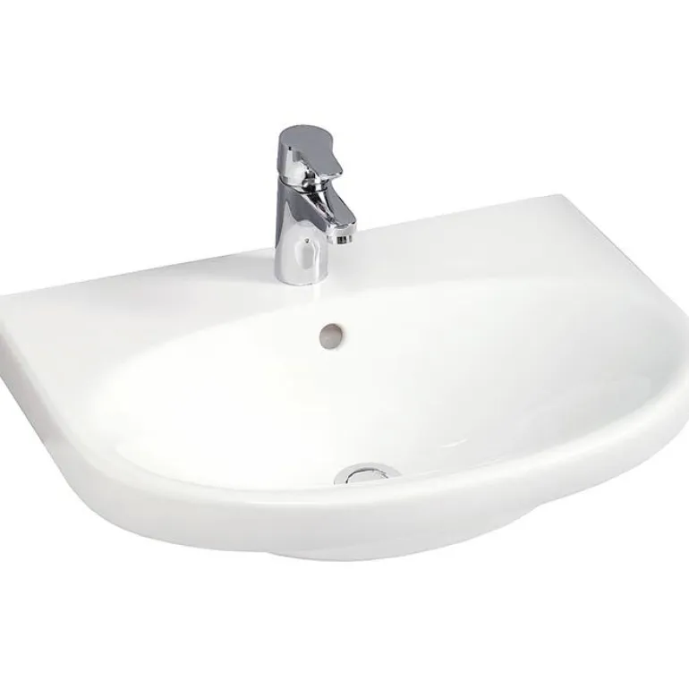 Pesuallas, jossa ei ole sekoittimen reikää, kiinnitettäväksi seinään pulteilla tai kannakkeilla. Soikea pesuallas, jossa on runsaasti laskutilaa. Allas on ulkomitoiltaan 560 x 430 mm (L x S) ja sisämitoiltaan 495 x 285 mm.