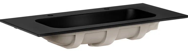 Musta 100 cm:n pesuallas Gustavsbergin Artic-lipastoihin, valmistus alkanut vuonna 2022. Valmistettu posliinista ja varustettu kahdella sekoittimen reiällä.