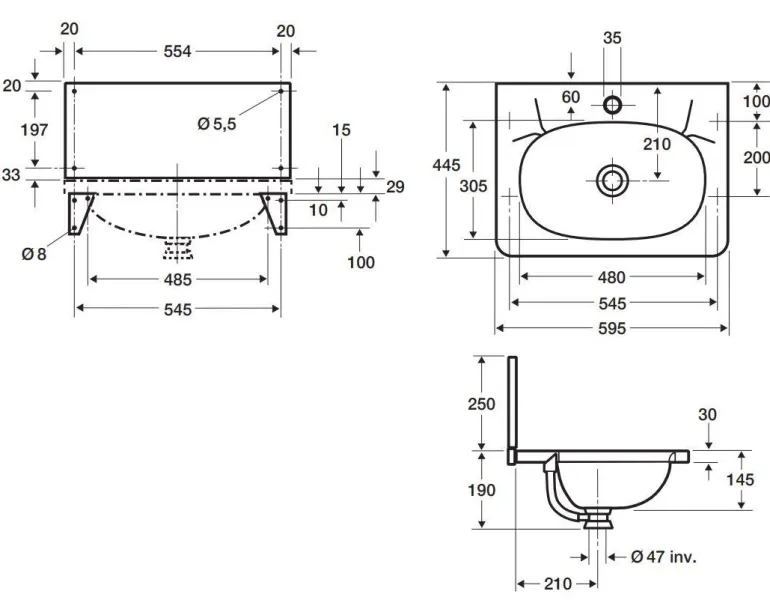 Pesuallas kannatinasennukseen, hanan reikä 35 mm yksireikäiselle sekoittimelle. Mukana ylivuotoputki sekä ruuvit ja mutterit kannatinta varten. Ilman roiskesuojaa, kannattimia ja pohjaventtiiliä.