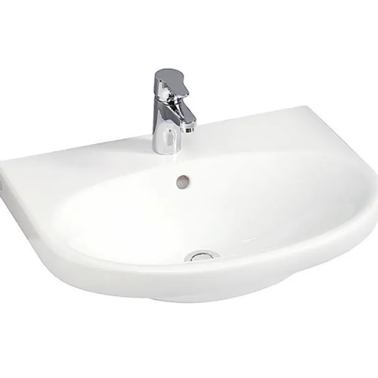 Pesuallas kiinnitettäväksi pulteilla tai kannakkeilla. Pesuallas on valkoinen posliiniallas, jonka keskellä on sekoittimen reikä. Toimitetaan ilman sekoitinta.