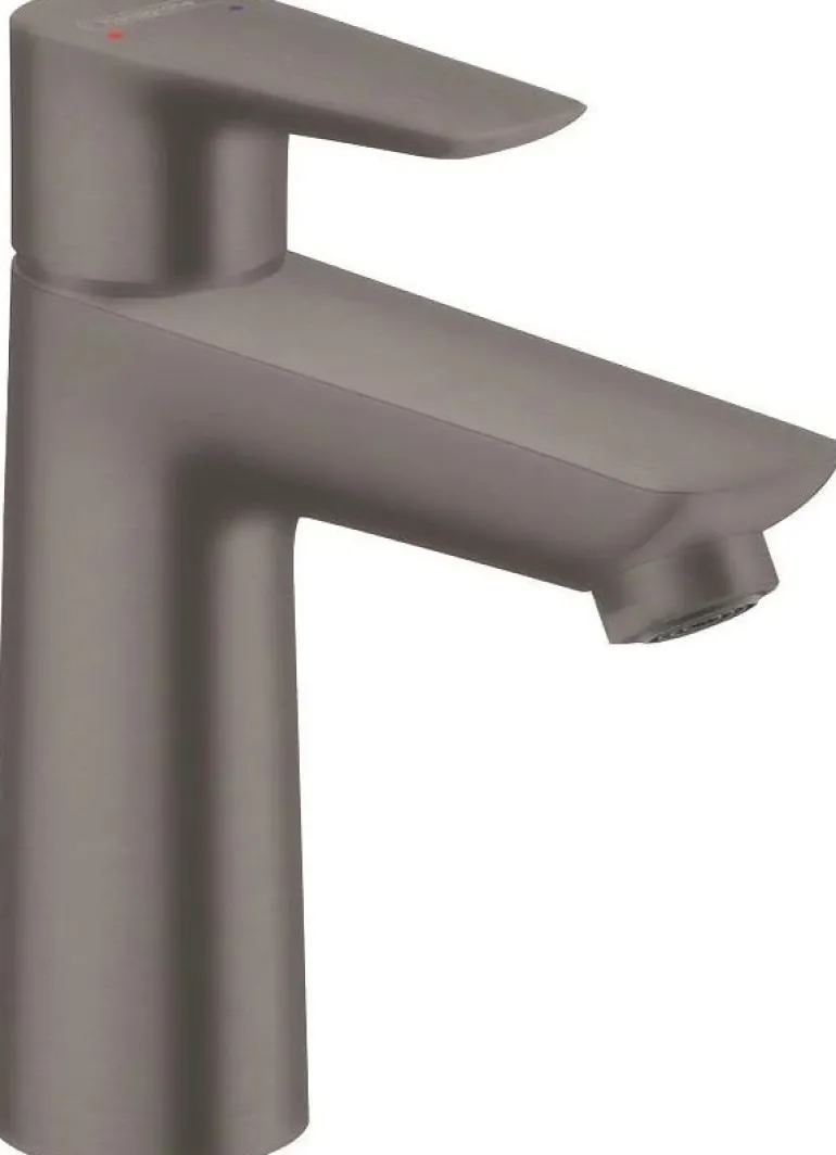 Hansgrohe Talis E 110 on yksiotehana ilman vipupohjaventtiiliä (harjattu musta/kromi). Säädettävä lämpötilarajoitin ja keraaminen säätöosa. Juoksuputken korkeus on 104 mm ja maksimivirtaama 5 l/min (3 baarin paineella).