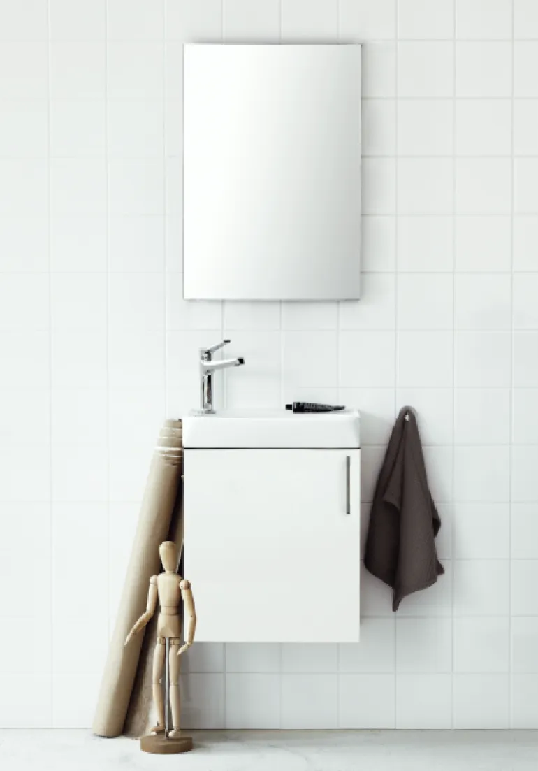Svedbergs Skapa on valkoinen allaskaappi, jonka koko on 45 x 35 cm. Allaskaapissa on pehmeästi sulkeutuva ovi ja sisäpuoliset metallihyllyt, joissa on korkkimatto. Valmistettu kosteutta kestävästä lastulevystä, jossa on neljä maalikerrosta. Kromikahvat sisältyvät toimitukseen.