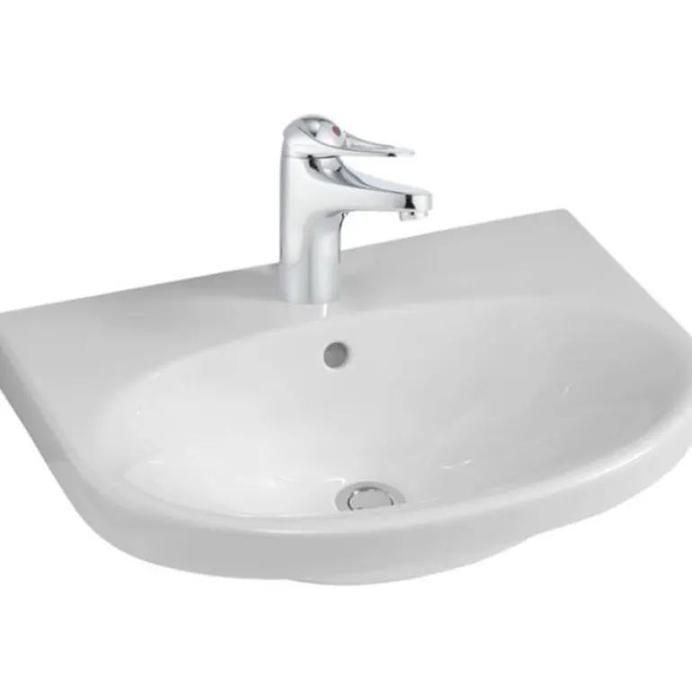 Gustavsberg GBG 5556/FMM 9000E on pesuallaspaketti, jossa on valmiiksi asennettu sekoitin, vesilukko, kannakkeet, ruuvit ja tulppa.