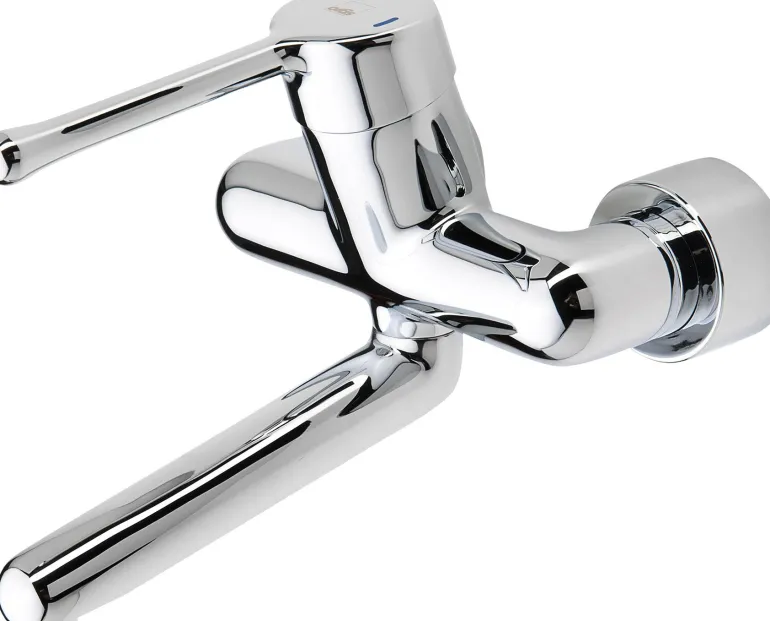 Seinään asennettava Oras Medipro -pesuallashana, 150 cc. Tukeva pitkä vipu, joka tarjoaa hyvän käytettävyyden kaikille käyttäjille ja kaikissa tilanteissa, kääntyvä juoksuputki ja laminaarivirtaus.