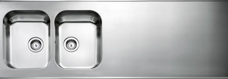 Käännettävä pesupöytä kahdella altaalla. Sisältää koripohjaventtiilit, ylivuodon ja vesilukon. Altaiden mitat: 339 x 436 x 160 mm. Ulkomitat: 1620 x 600 x 30 mm.