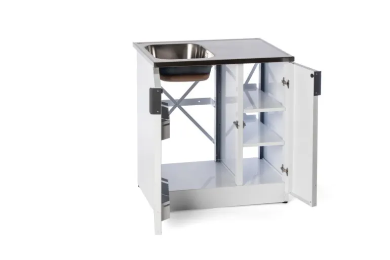 Nimo TB 800 T on pesupöytä/allaskaappi, jonka runko ja sen osat pinnoitettua terästä. Mallissa on altaalla varustettu pesupöytä ruostumattomasta teräksestä, kaksi ovea, tila pesuaineille, lapsilukko, kaksinkertaiset säilytyslokerot ovissa, ovissa hidastin ja piilosaranat sekä täysin integroitu alusta.