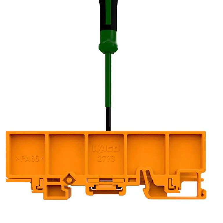 DIN-kiskon kiinnitysadapteri, 2-8-johtimiselle sarjan 2773 riviliittimelle.