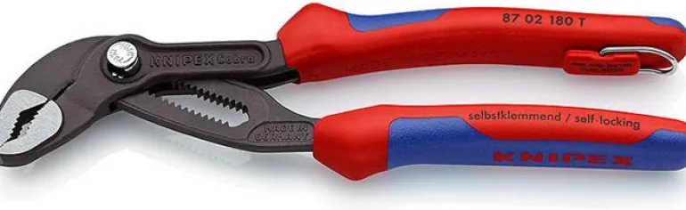 Knipex 8702180T on 250 mm:n säädettävä pihtiavain puristussuojalla. Miellyttävä oteasento ja putoamissuojain.