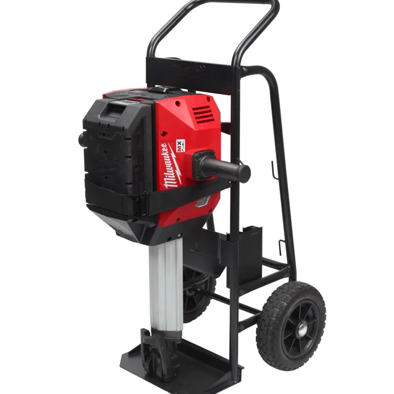 Milwaukee MXF DHT on työkaluvaunu mallille MXF DH2528H, tilaa 4 taltalle, laturille ja akulle sekä kiinnityshihna piikkausvasaran kuljettamista varten. Suuret kumipyörät helpottavat kuljetusta epätasaisessa maastossa.