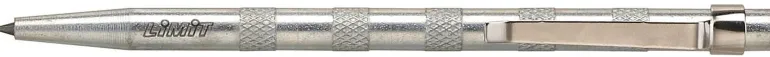 Kovametallikärki. Pyöreä, pyälletty varsi. Klipsi.