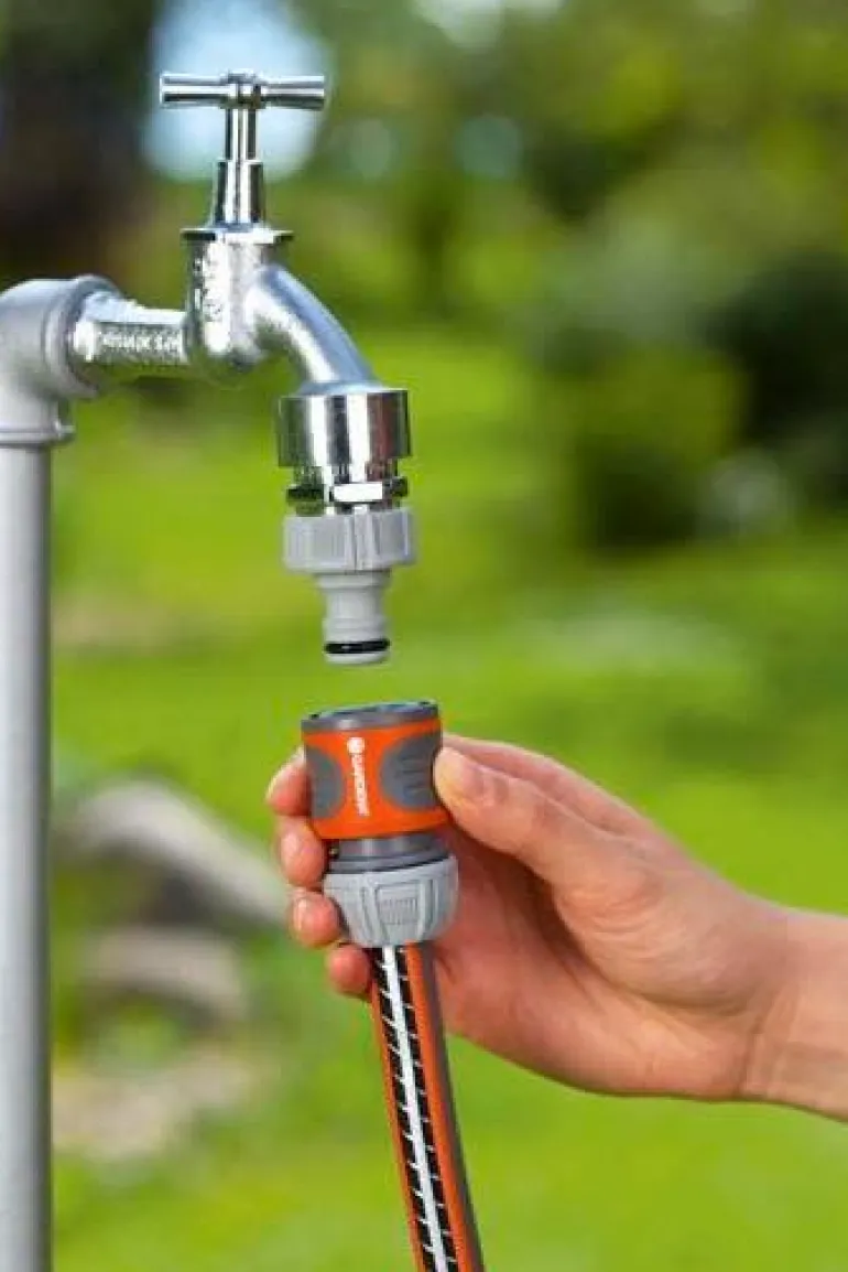 GARDENAn sulkuliitin on käytännöllinen letkuliitin, jonka innovatiiviset ominaisuudet helpottavat puutarhan kastelutehtäviä. Liitin kiinnitetään letkun loppupäähän, ja se on erityisen kätevä silloin, kun haluat vaihtaa kastelulaitetta kesken kastelun. Automaattinen vedenpysäytystoiminto katkaisee veden virtauksen välittömästi ja käynnistyy uudelleen vasta, kun liität siihen uuden kastelulaitteen, kuten kastelupistoolin. Ominaisuus säästää ylimääräiseltä vaivalta, sillä sulkuliitintä käyttäessäsi sinun ei tarvitse kävellä sulkemaan hanaa.