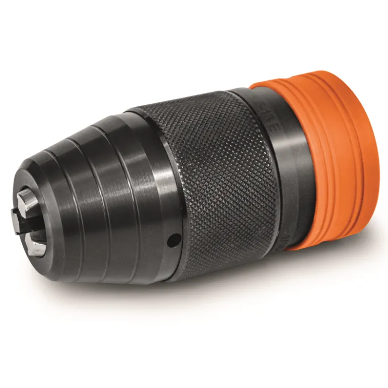 Automaattisesti säätyvä, Röhmin valmistama tasaleukainen täysmetallinen pikaistukka. Estää kierreporanterien ja kierretappien luistamisen.