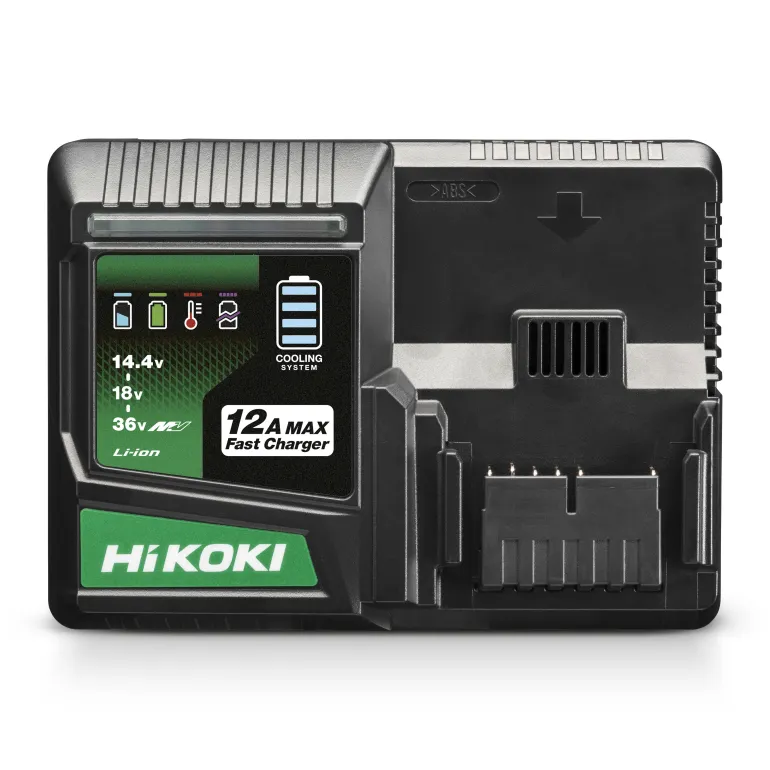 Pikalaturi/akkulaturi (12 A), jossa USB-portti kannettavien laitteiden lataamiseen. Lataa kaikki HiKOKI 14,4V, 18V ja 36V MULTI VOLT -akut liukukiinnityksellä. Jäähdytystuulettimen avulla lämpö johdetaan pois, mikä mahdollistaa tehokkaan latauksen.