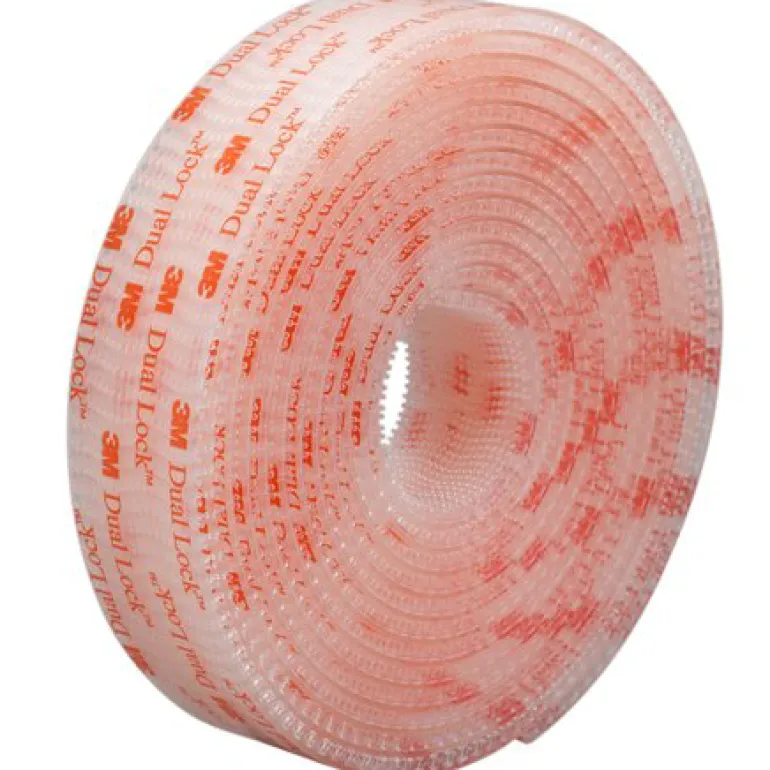 Pikalukko, jossa on 40 koukkua/cm² ja 5,8 mm paksuus suljetussa asennossa. Läpinäkyvä akryyliliima läpinäkyvän, uudelleen suljettavan polypropeenikiinnikkeen takana.