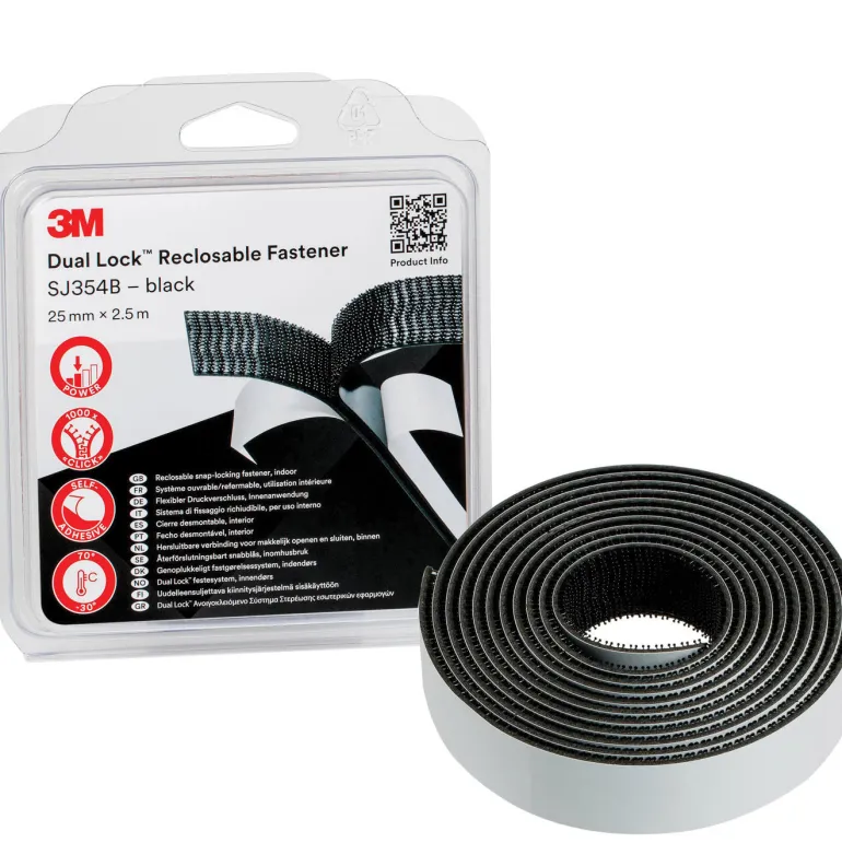 3M Dual Lock SJ354B on pikalukko, jossa on 40 sienen muotoista koukkua per cm² ja jonka paksuus on 5,8 mm suljetussa asennossa. Kumipohjainen liima mustan, uudelleen suljettavan polypropeenikiinnikkeen selässä. Lukko suljetaan kuuluvalla napsauksella ja se on suunniteltu kiinnitettäväksi moniin muoveihin, jauhemaaleihin ja muihin matalan pintaenergian materiaaleihin. SJ354B voidaan avata ja sulkea 1000 kertaa ennen kuin se menettää 50 % alkuperäisestä lujuudestaan.