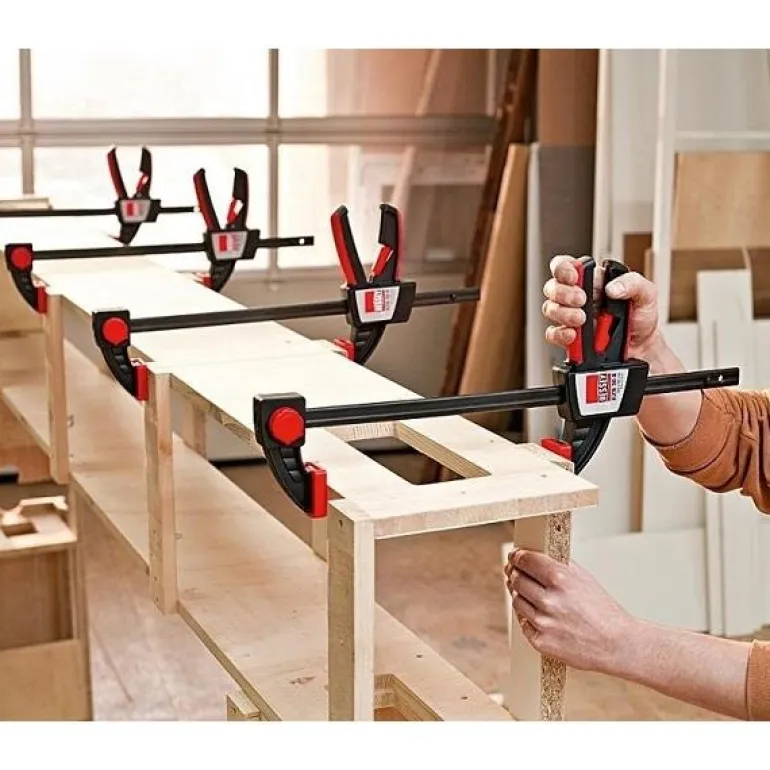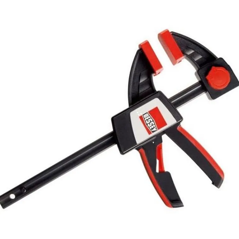 Yhden käden puristin, aukkoväli 300 mm ja syvyys 80 mm. Vankkarakenteinen puristin, puristusvoima 200 kg ja paino noin 1 kg. Yhden käden puristimessa on puristus sisään- ja ulospäin sekä kaksikomponenttimateriaalikahva.