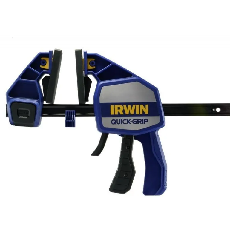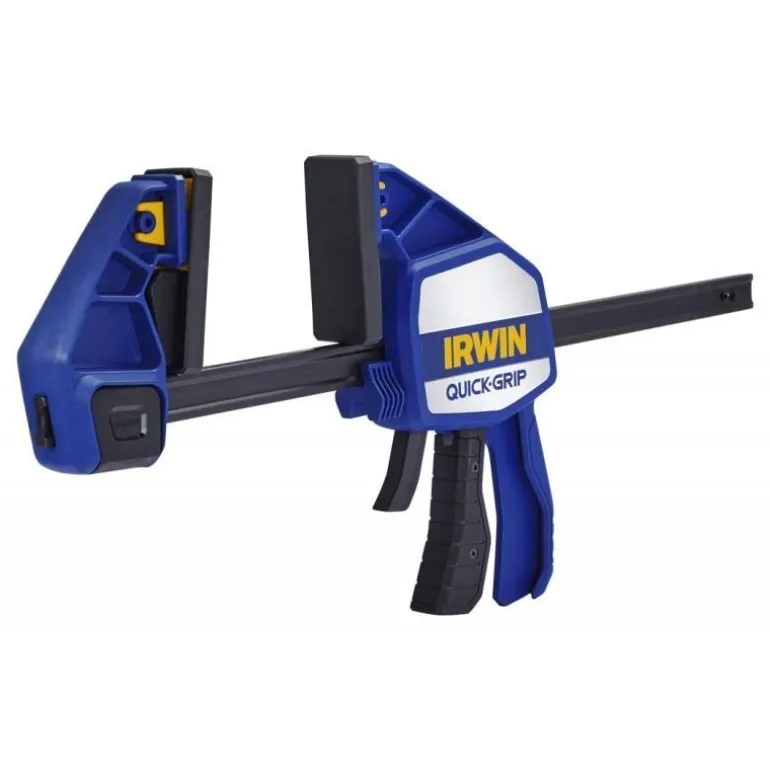 Irwin Quick Grip Heavy-Duty on yhden käden puristin, jonka puristusväli on 1250 mm ja joka jakaa tasaisesti jopa 272 kg:n puristusvoiman, on yksi markkinoiden tehokkaimmista yhden käden puristimista.