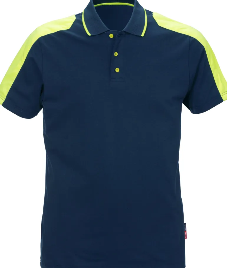 Pikeepaita puuvillasta. Joustava stretchmateriaali ja keltaiset näkyvyyttä parantavat paneelit.