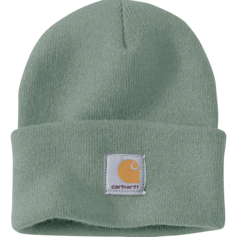 Joustinneulepipo, unisex-malli, 100 % akryyliä. Pipon etupuolella on Carhartt-merkki.