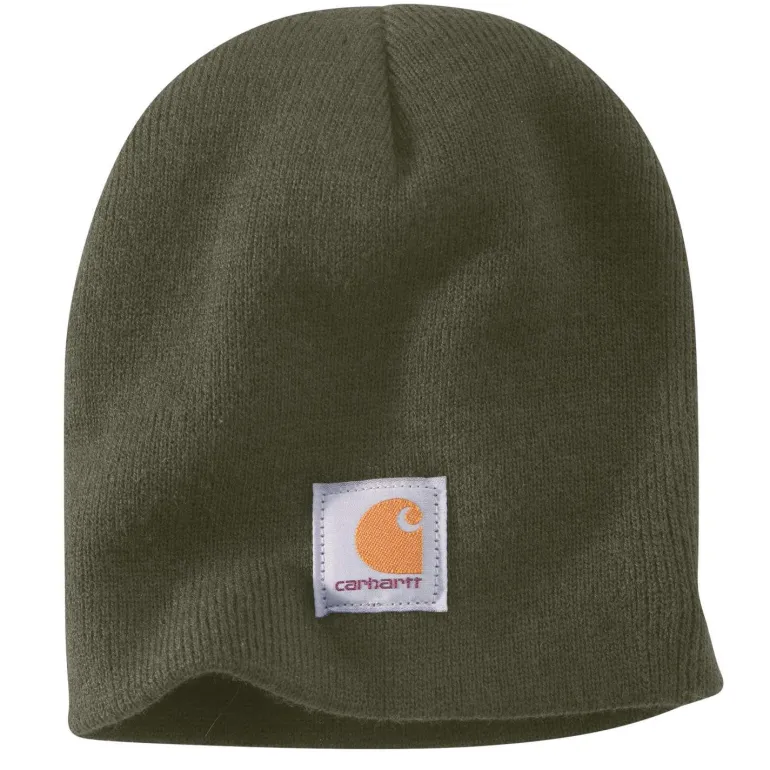 Joustinneulepipo 100 % akryyliä, etupuolella Carhartt-merkki.