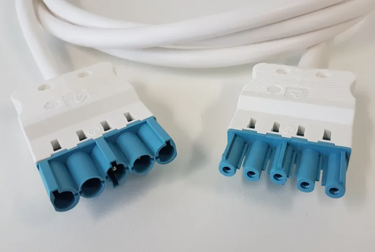 Pistoliitinjohtosarja: valkoinen, naaras-uros HF.