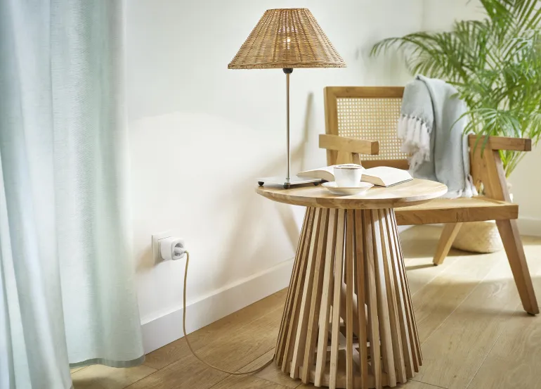 Smart plug on maadoitettu 1-suuntainen Schuko-pistorasia. Laite on älykkään kodin tuote, joka tarjoaa sähkölaitteiden täyden hallinnan.