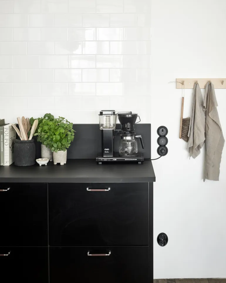 1-osainen Renova-pistorasia on sovitettavissa yhdistelmiin. Mitat Ø83/29 mm.