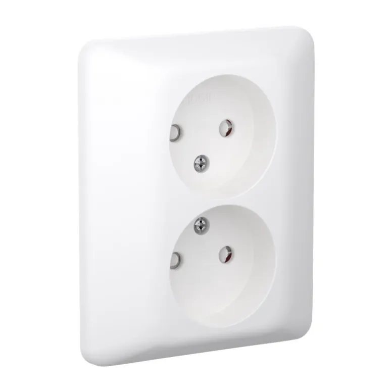 Elkon pistorasia ”RS-Skruv” uppoasennukseen. Pistorasia on maadoittamaton. Pohja ja kehys halogeenittomasta kestomuovista. Kaksinkertaiset liitännät vaihetta kohti. Ruuviliitos. Täydennetään tarvittaessa kiinnityskynsillä.