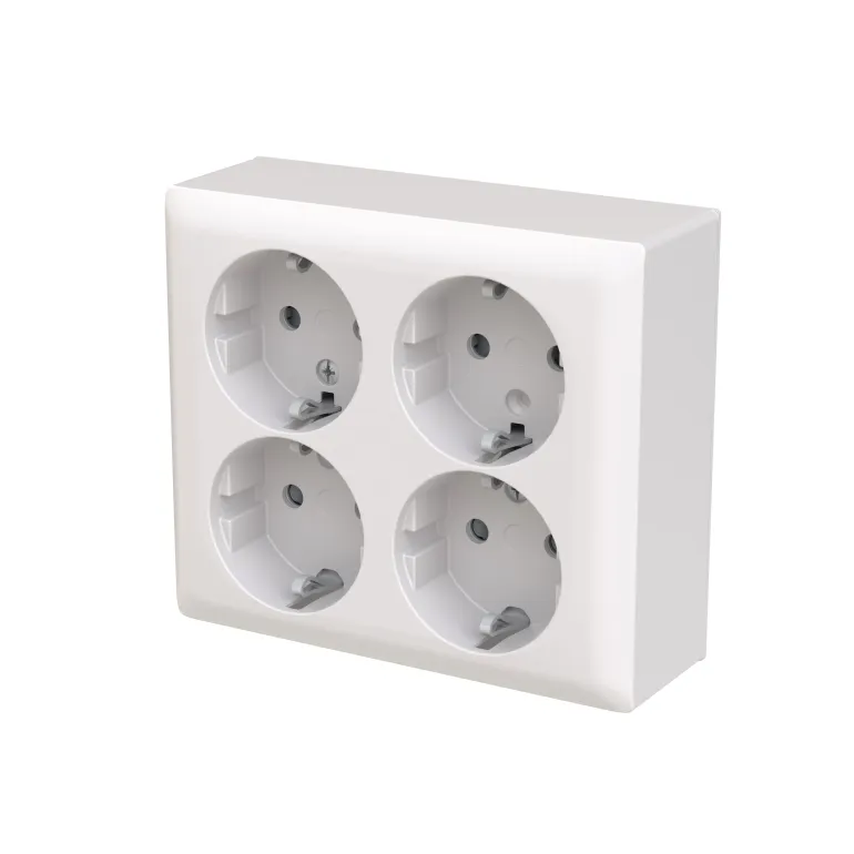 SAGA™ 4-osainen pistorasia. Pistorasiassa on liittimet kutakin kosketinta kohden. Kaikkiin liittimiin voi kytkeä max. 2 johtoa. Liittimet on hyväksytty ML- ja MK -johtimille. Pintapistorasian kokopeitelevyn valmistukseen on käytetty biopohjaista muovia ja se on valmistettu ABB:n nettonolla-tehtaassa Suomessa.