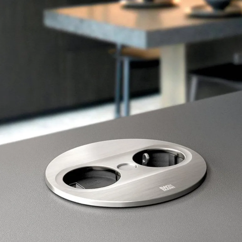 Rutab TWIST2 on pistorasia Schuko-pistorasialla sekä USB A- ja USB C-porteilla. Upotusleveys 105 mm (halkaisija) ja -syvyys 40 mm. Asennettavaksi pöytään tai muuhun tasoon/levyyn. Irrotettava kansi, joka avautuu automaattisesti painamalla keskellä olevaa painiketta. Mukana 2 metriä asennuskaapelia.