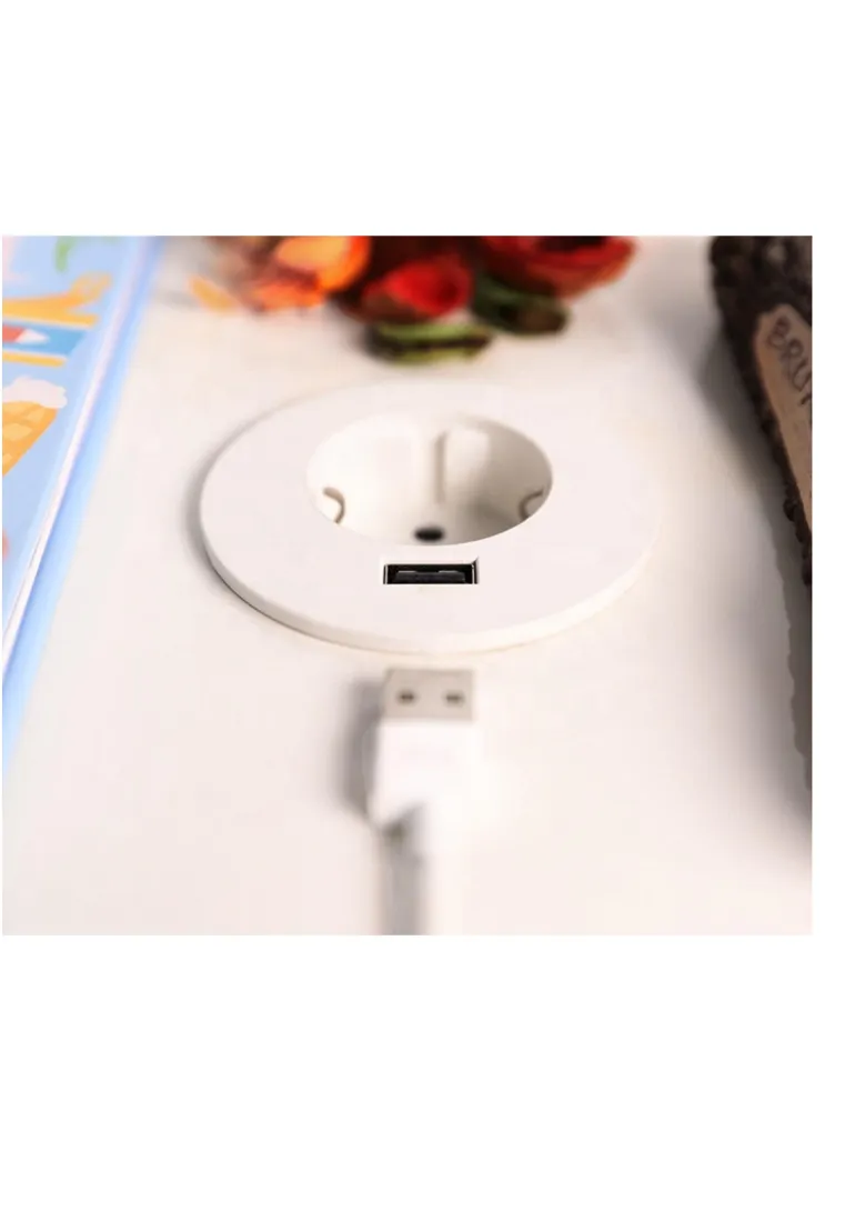 Rutab LOOP2 on 1-osainen pistorasia USB A -portilla. Uppoasennettava ø60 mm reikään pöytään tai tasolevyyn jonka enimmäispaksuus noin 50 mm.