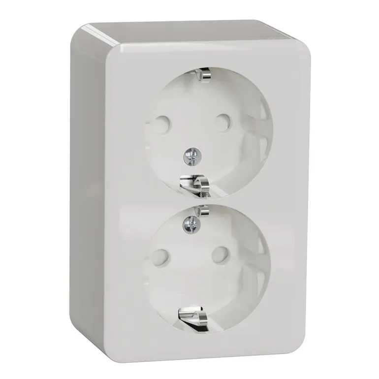Schneider Electric Exxact pinta-asennettava 2-pistorasia. Uuden malliston pistorasioissa pohjalevyn lisäkiinnitysreiät tekevät seinäkiinnityksestä luotettavamman. Uusi Exxact pinta-mallisto nyt RAL9003-värissä. Modernit ja tyylikkäästi muotoillut Exxact pinta-asennuskalusteet.