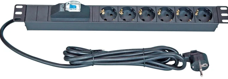 Asennetaan vaakasuoraan 19″ telineeseen. Eurooppalainen muotoilu ja IEC 230 pistorasia. Pistorasian syvennykset ovat käytön helpottamiseksi 45 asteen kulmassa.