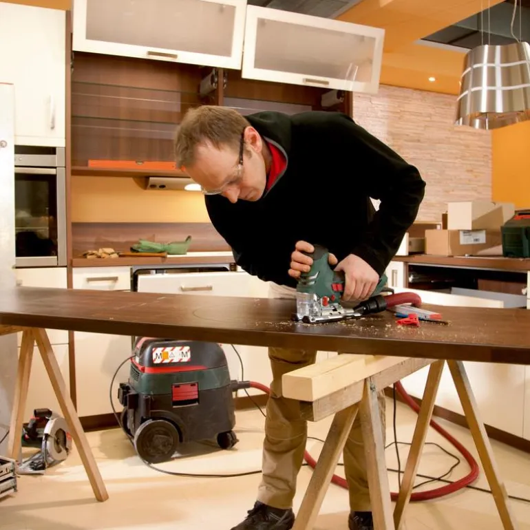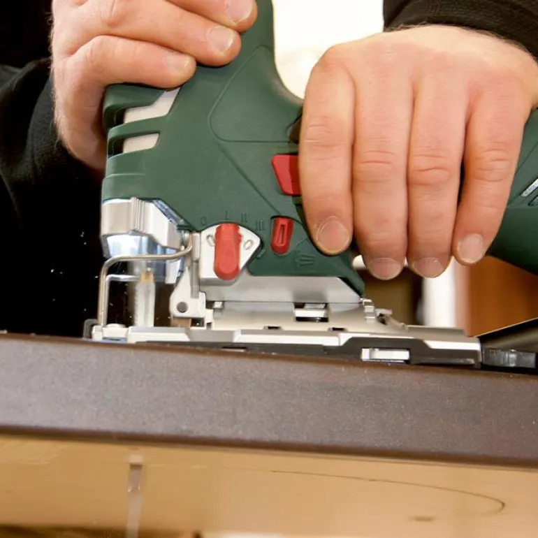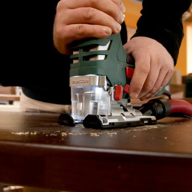 - Äärimmäiset tehokas pistosaha VTC-elektroniikalla, enintään 140 mm pehmeän puun nopeaan sahaukseen