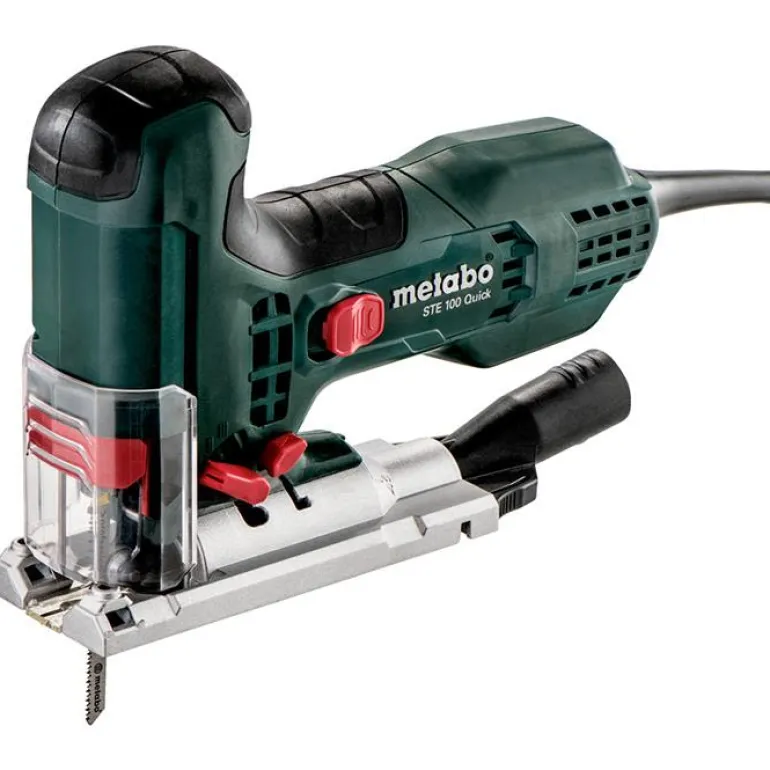 Metabo STEB 70 QUICK SET on erikoiskapea 710 W:n pistosaha, sahaussyvyys puuhun 100 mm, suurin iskunopeus 3100 iskua/min. Pistosahalla sahaa tarkasti ja materiaalin mukaan oikein säädettävän kierrosnopeuden, heilurin sekä mahdollisimman alas sijoitetun tukirullan ansiosta. Purunpuhallustoiminto. Pakettiin sisältyy 20 pistosahanterää.