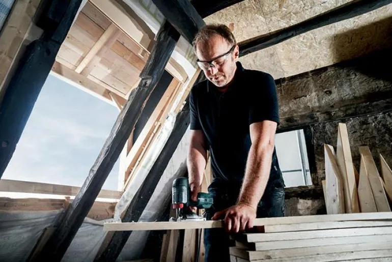 Erikoiskapea pistosaha 710 W, sahaussyvyys puuhun 100 mm, suurin iskunopeus 3100 iskua/min. Pistosahalla sahaa tarkasti ja materiaalin mukaan oikein säädettävän kierrosnopeuden, heilurin sekä mahdollisimman alas sijoitetun tukirullan ansiosta. Purunpuhallustoiminto. Pakettiin sisältyy 20 pistosahanterää.