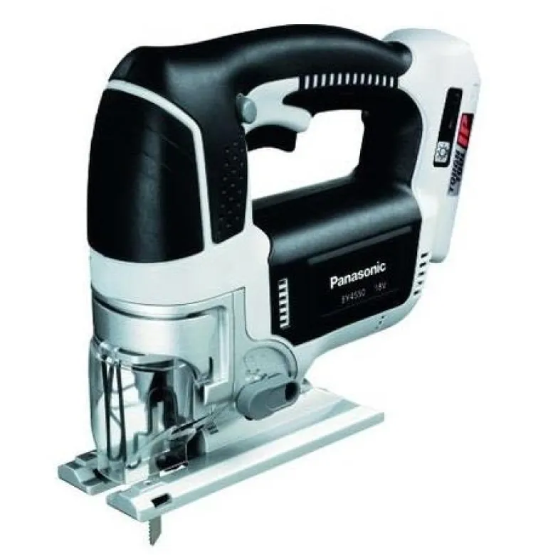 18V:n pistosaha, jonka maksiminopeus on 2500 kierr./min ja jossa on 3 erilaista heiluriasetusta ja sahanterien pikakiinnitys. Panasonic EY4550X:n kallistuskulma viistosahauksessa on 45°, varustettu purupuhaltimella sujuvampaa työtä varten.