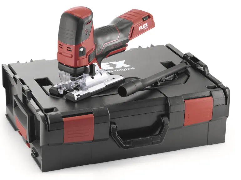 FLEX JS18.0-EC Set on 18 V pistosaha kuormittamattomalla nopeudella 0-3500 kierr./min, varustettu harjattomalla moottorilla ja EMS-elektronisella ohjausjärjestelmällä, joka suojaa konetta ja pidentää sen käyttöikää. Sahassa on automaattinen käynnistys, ylikuormitussuoja ja portaaton sahan nopeuden asetus. Mukana tarvikkeet ja kuljetuslaukku.