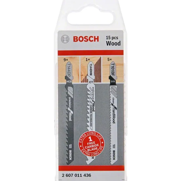 Bosch T 144 DP/T 101 BF on 15-osainen pistosahanteräsarja, jota voi käyttää kaikenlaisten pistosahojen kanssa. Sopii kaikenlaisille puumateriaaleille. Sahanterät säilyvät turvallisesti viidessä huolella suunnitellussa osiossa, josta ne saadaan kuitenkin käyttöön helposti ja nopeasti työn aikana. Tuotesarja koostuu teristä, jotka sopivat erinomaisesti monenlaiseen käyttöön puunkäsittelyn alalla. Sisältää myös Boschin ainutlaatuisella, kehittyneellä kovametallitekniikalla valmistetun koeterän. Pakkauksen kompakti muotoilu mahdollistaa kätevän säilytyksen työkalupakissa sekä nopean yleiskuvan teristä, helpon pääsyn ja turvallisen kuljetuksen.