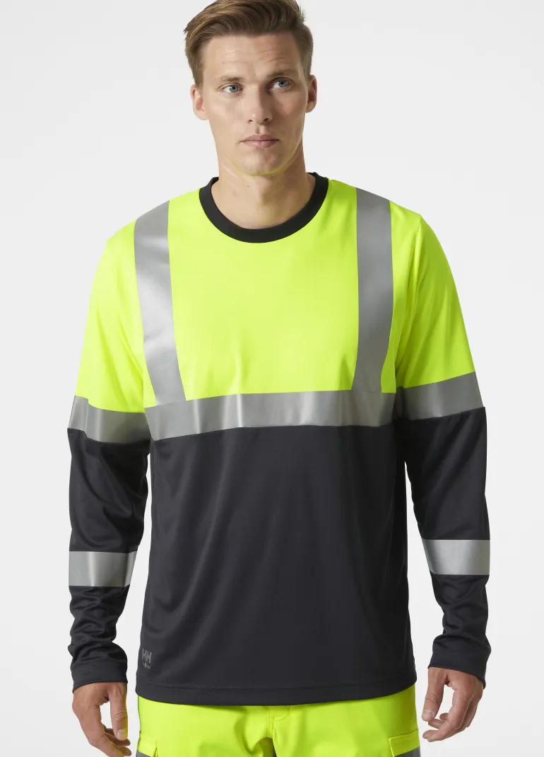Pitkähihainen Addvis-huomiopaita (luokka 1) neljään suuntaan joustavaa kangasta. Kankaassa UPF 40+ -suojaus.