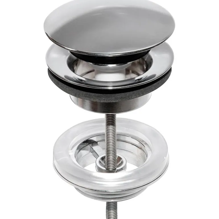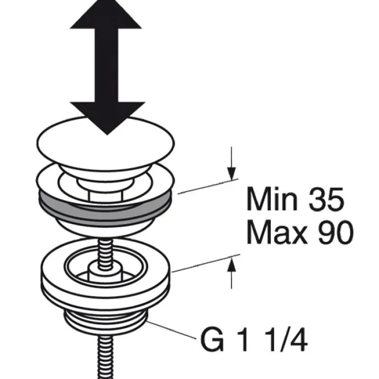 Painettavalla mekanismilla varustettu pohjaventtiili 35-90 mm:n pesualtaille, joissa on ylivuoto.