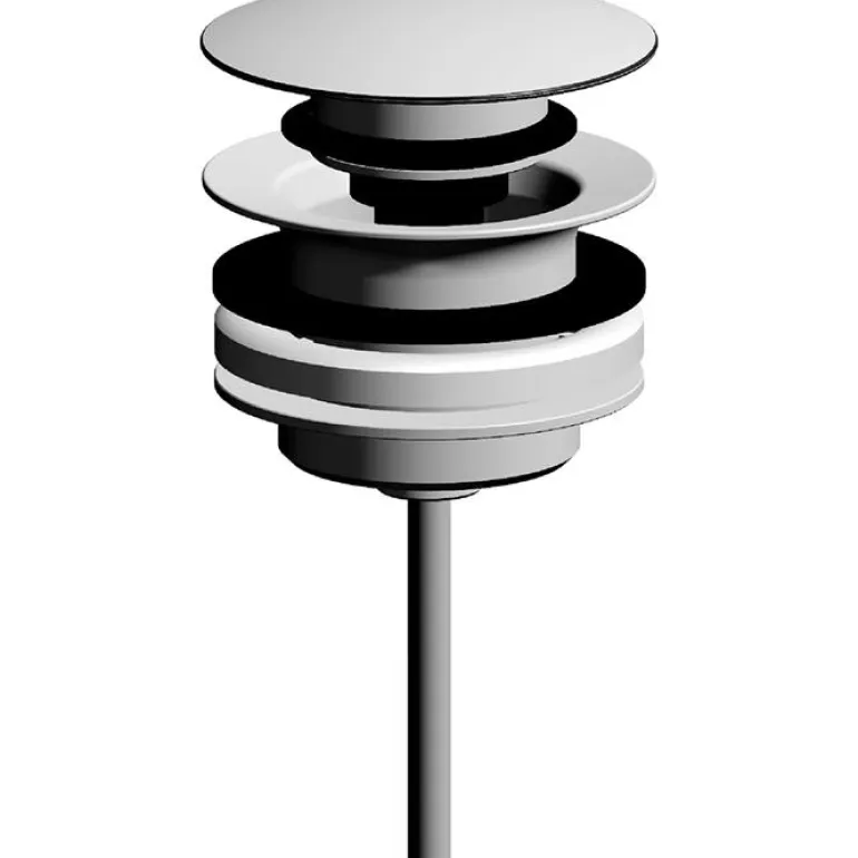 Jousikuormitteinen pohjaventtiili, jossa on pop-up-toiminto, käytettäväksi pesualtaissa.