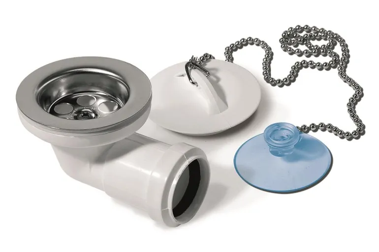 Pohjaventtiili tulpalla ja ketjulla kylpyammeelle ja suihkualtaalle. Kulma-malli 90°.