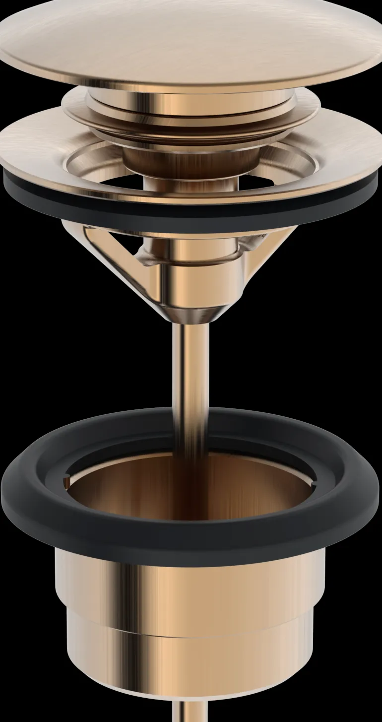 Helppokäyttöinen pohjaventtiili, joka avautuu ja sulkeutuu painamalla. Pintakäsittely (harjattu teräs) antaa sille modernin ja tyylikkään ilmeen.