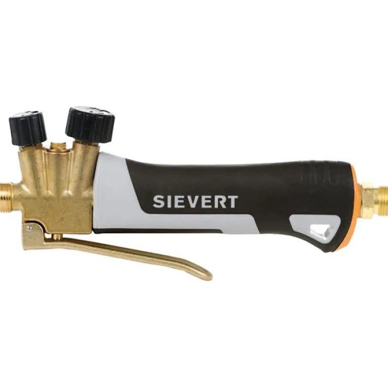 Sievert Pro 348841 on kaksiventtiilinen kahva Pro 88 -sarjan polttimiin. Pääasiassa isompiin polttimiin. Varustettu kaasua säästävällä säästöventtiilillä. Painikkeella voit vaihtaa nopeasti säästöliekin ja perusliekin välillä. Kaikki metalliosat on valmistettu erittäin korkealaatuisesta messingistä. Ergonomisesti muotoillut komposiittikahvat. Toimitetaan ilman letkunippaa.