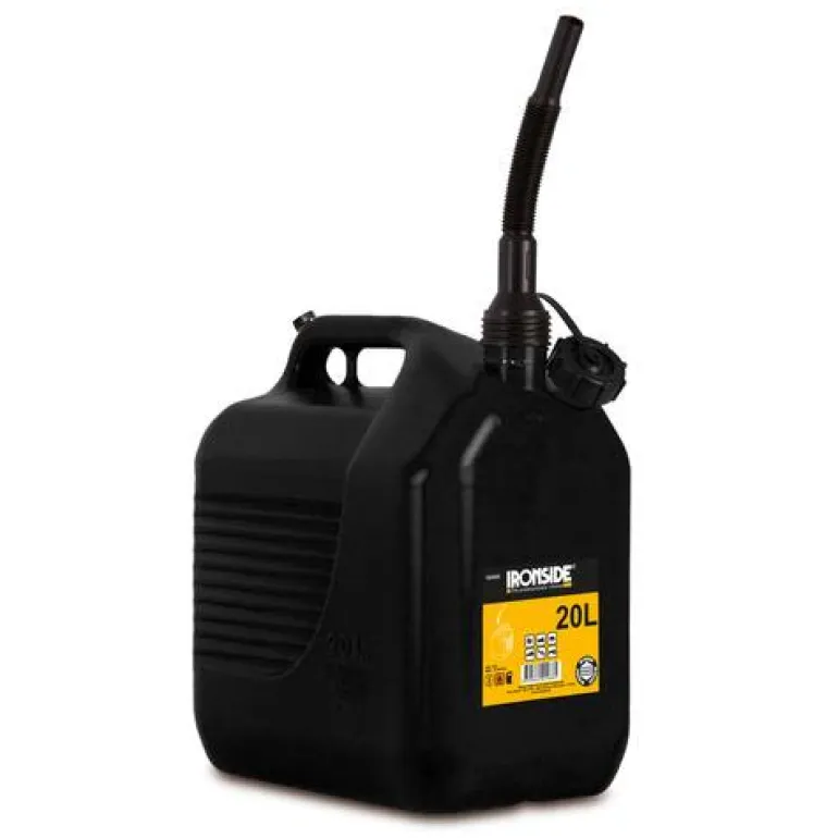 Bensiinikanisteri hyväksytty vaarallisten aineiden kuljetukseen luokkiin 3, 6.1, 8 ja 9. Tukeva ja iskunkestävä muovirakenne, jossa joustava kaatonokka. Täyttötason ilmaisimella. HDPE-muovia.