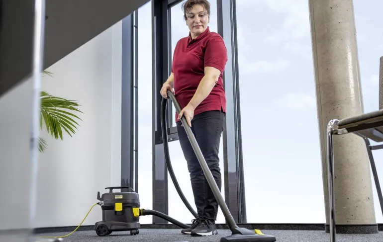 Kärcher T 11/1 Classic Adv Re! pölynimuri vakuuttaa ensiluokkaisella imutehollaan, kestävyydellään ja erinomaisella hinta-laatusuhteellaan. Re!Plast-sarjan imureiden tunnusmerkkinä on musta muovirunko, jonka valmistuksessa käytetään vähintään 60 % kierrätysmuovia. Suuresta imutehosta huolimatta kone toimii alhaisella äänitasolla, vain 61 dB(A), joten se voi hyvin sopia meluherkkiin ympäristöihin. Pölynimuri on kompaktisti muotoiltu kaatumisestolla, ja sen säiliön tilavuus on 11 litraa. Paino vain 4 kiloa. Malli on lisäksi varustettu ergonomisella kantokahvalla ja imuputken kädensijalla/mutkalla, joka helpottaa käsittelyä ja työskentelyä. Mallissa on 12 metrin pituinen vaihdettava virtajohto. Rungossa kätevä säilytyspaikka tarvikkeille, kuten imuletkulle ja lattiasuulakkeelle.