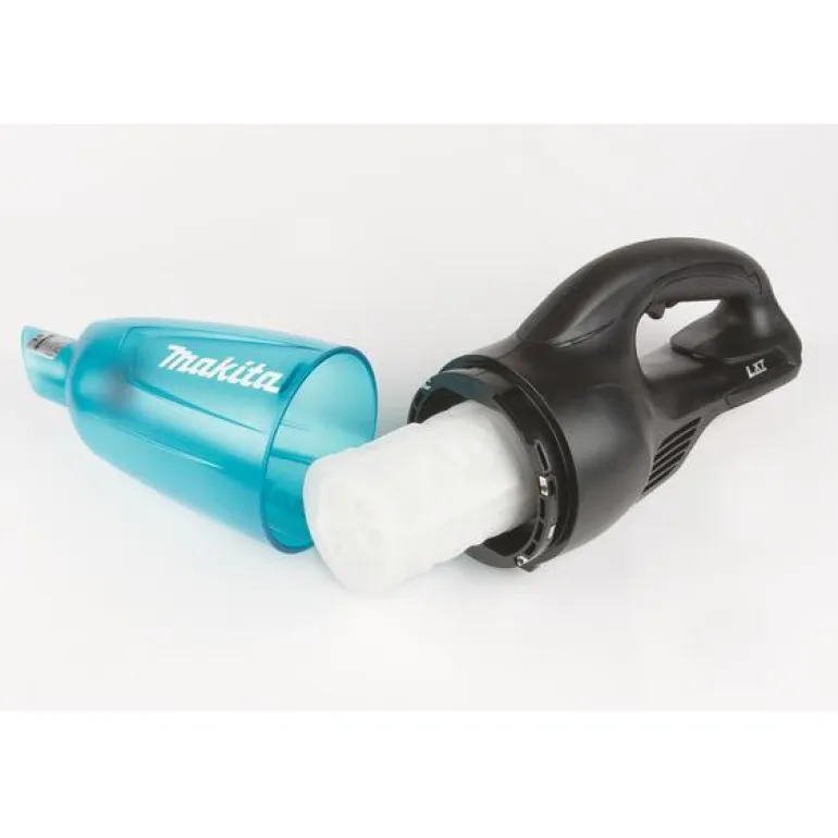 Makita DCL180ZB on akkukäyttöinen imuri 18 V, jonka kapasiteetti on 650 ml ja käyttöaika 20 min.